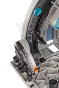 - A beépített zárnak köszönhetően a fűrész nem borul le a sínről, ha 45°-os szögben használják.
