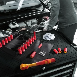 - 14× szigetelt Zyklop dugókulcsok, 3/8"-os meghajtással, méretek: 6–19 mm (mind 46 mm hosszú)