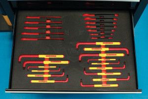 - 4. fiók: 27 db-os szigetelt villás kulcsok+ racsnis csillag kulcsok + L-alakú imuszkulcsok + L-aklakú torx kulcsok)
