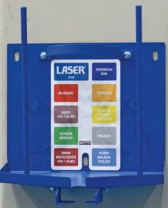 Ez a készlet a Laser olajtölcsér adapter készletet (cikkszám: LAS-7980) és az új mágneses olajleeresztő tartó állomást (cikkszám: LAS-9113) ötvözi, amelyet kifejezetten a tölcsérkészlet használat utáni tiszta, rendezett és kényelmes tárolására terveztek, lehetővé téve az alkatrészek számára a felesleges olaj leeresztését, így az egy megfelelő 1 literes olajospalackba folyhat az időszakos biztonságos ártalmatlanítás érdekében.