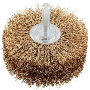 Csapos rezes kerékkefe rusztikus formázó kerrékkefe rezes HSS acélhuzal ideális korrózióálló, rozsdamentes felületi bevonatok eltávolítására, tisztításra, méretezésre, burkolatmentesítésre és felületi szintezésre, különösen antikolásra fém és fa számára, ideális élek, keretek, oszlopok, rudak, csövek és meglehetősen nagy területeken való munkához.