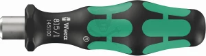 Prémium minőségű bitbefogású csavarhúzó. A mágnes biztosítja a bit biztonságos rögzítését a tartóban. Kraftform Plus markolat a kényelmes, ergonomikus csavarozáshoz, elkerülve a hólyagokat és a bőrkeményedéseket. Kemény markolatzónák a nagy munkasebességért, míg a puha markolatzónák garantálják a nagy nyomatékátvitelt. Alkalmas 1/4"-os külső hatszögletű bitekhez a DIN ISO 1173-C 6.3 és E 6.3 szabvány szerint, valamint Wera 1-es és 4-es csatlakozósorozathoz.
