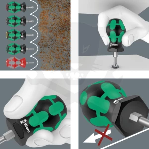 - Rövid pengés kialakítás: ideális szűk helyeken, ahol a normál csavarhúzók nem férnek el.