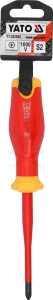 - Szigetelt csavarhúzó, 1000 V-ig minősítve, megfelel az IEC 60900 szabványnak.