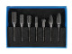 Tartalom: 1 gömbös, 2 kúpos, 2 hengeres, 2 hengeres gömbfejjel kialakított maró fejek.