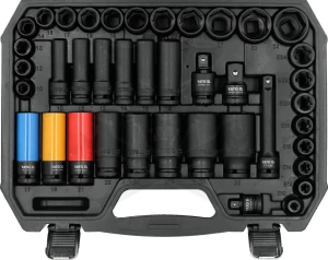 A készlet a leggyakrabban használt méretű rövid és hosszú dugókulcsokat, kerékcsavar-dugókulcsokat és széles bitválasztékot tartalmaz. Ez ideálissá teszi mind autószerelő műhelyek, mind szerviz- vagy szerelési munkák számára.