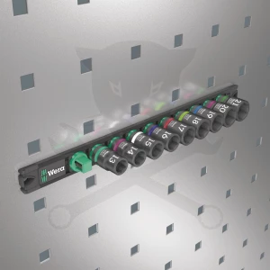 - Mágneses sín biztonságos dugókulcs rögzítéssel és mégis egyszerű eltávolítással (elfordítással oldható) ideiglenes rögzítéshez falra, polcra vagy műhelykocsira
