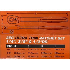3 darabos extra vékony kialakítású racsnis kulcs készlet.