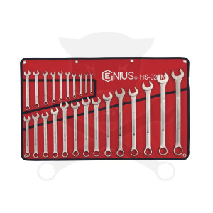 Csillag-villáskulcs készlet 24 darabos kiszerelésben, összegöngyölt falra akasztható szövet tárolóban.