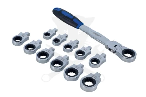- Flexibilis fejű racsnis villáskulcs 12 cserélhető fejjel, ideális szűk helyeken való használatra.