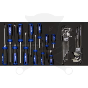 - 1 db SP00557 cikkszámú tálcás 27 db-os Csavarhúzó készlet + Imbuszkulcs készlet + Torxkulcs készlet