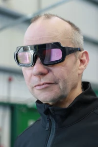 Napelemes, automatikusan sötétedő hegesztőszemüveg, amely automatikusan vált világos állapotból sötét állapotba.