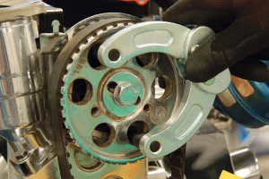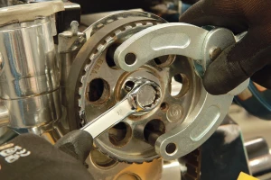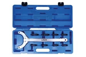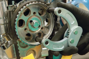 Többcélú szíjtárcsa- és lánckerék ellentartó szerszám cserélhető csapszegekkel.